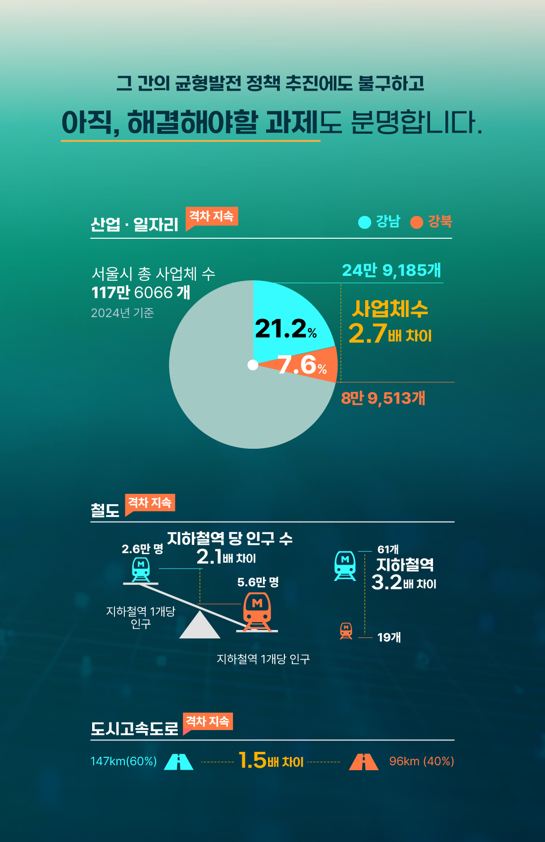 그 간의 균형발전 정책 추진에도 불구하고 아직, 해결해야할 과제도 분명합니다.